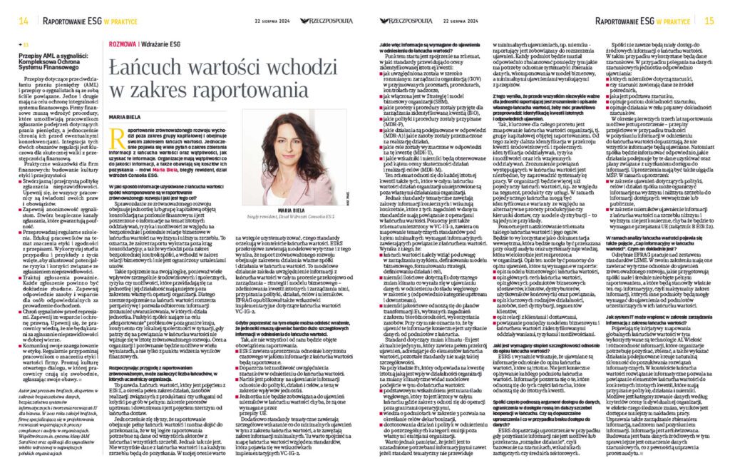 Co do stopnia szczegółowości opisu łańcucha wartości, to w myśl ESRS 1 powinny być ujawniane informacje odnoszące się do istotnych kwestii. Nie ma obowiązku opisywania każdego podmiotu łańcucha.